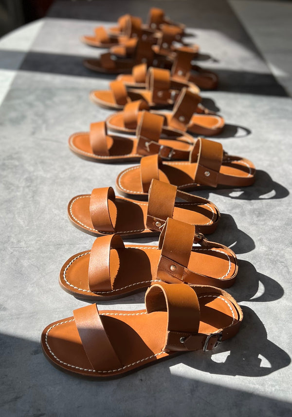 Discover our timeless handmade leather sandals from India—crafted from rich buffalo leather, chosen for its strength, supple feel, and the way it softens beautifully over time. Each pair is meticulously stitched by skilled artisans and finished with a plush cushioned sole designed to absorb impact and support every step. Elegant, breathable, and made for movement, these sandals balance heritage craftsmanship with modern ease—refined enough for city streets, effortless enough for sun-soaked days.